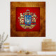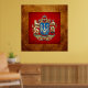 Introducing project “World Heraldry 3D” collection by C.7 Design Studio, showcasing top quality unique heraldry designs. Here you will find framed and wrapped/stretched canvas fine art prints, featuring greater coat of arms of Ukraine. Ukraine (Ukrainian: Україна) is a country in Eastern Europe. Ukraine borders Russia to the east and northeast, Belarus to the northwest, Poland, Slovakia and Hungary to the west, Romania and Moldova to the southwest, and the Black Sea and Sea of Azov to the south and southeast, respectively. It has an area of 603,628 km2 (233,062 sq mi), making it the largest country entirely within Europe. The territory of Ukraine was first inhabited at least 44,000 years ago, with the country being a candidate site for both the domestication of the horse and for the origins of the Indo-European language family. Ukraine has long been a global breadbasket due to its extensive, fertile farmlands. Additionally, the country has a well-developed manufacturing sector, particularly in the area of aerospace and industrial equipment. Ukraine is a unitary state composed of 24 oblasts (provinces), one autonomous republic (Crimea) and two cities with special status: Kiev, its capital and largest city and Sevastopol, which houses the Russian Black Sea Fleet under a leasing agreement. Ukraine is a republic under a semi-presidential system with separate legislative, executive, and judicial branches. Since the dissolution of the Soviet Union, Ukraine continues to maintain the second-largest military in Europe, after that of Russia, when reserves and paramilitary personnel are taken into account. The country is home to 44.6 million people, 77.8% of whom are ethnic Ukrainians, with sizeable minorities of ethnic Russians (17%), Belarusians, Tatars and Romanians. Ukrainian is the official language of Ukraine; its alphabet is Cyrillic. Russian is also widely spoken. The dominant religion in the country is Eastern Orthodox Christianity, which has strongly influenced Ukrainian architecture, literature and music. The state coat of arms of Ukraine (Ukrainian: Державний Герб України) or commonly the Tryzub (Ukrainian: Тризуб, "trident") is the national coat of arms of Ukraine, featuring the same colours found on the Ukrainian flag; a blue shield with gold trident, called the tryzub, which means "three teeth." It means the triune God on earth and in heaven. It appears on the Presidential standard of Ukraine. Blue coloured tridents are considered to be irregular representation by the Ukrainian Heraldry Society. The small coat of arms was officially adopted on 19 February 1992, while constitutional provisions exist for establishing the great coat of arms, which is not yet officially adopted. The small coat of arms was designed by Andriy Grechylo, Olexiy Kokhan and Ivan Turetskyi. It is a representation of the seal-trident of Vladimir the Great. The trident was not thought of as a national symbol until 1917, when one of the most prominent Ukrainian historians, Mykhailo Hrushevsky, proposed to adopt it as a national symbol (alongside other variants, including an arbalet, a bow or a cossack carrying a musket, i.e. images that carried considerable historical and cultural and heraldic significance for Ukraine). On 22 March 1918, the Central Rada (parliament) adopted it as the coat of arms of the short-lived Ukrainian People's Republic. During the Soviet period of 1919-1991 the state symbols were consistent with the Russian SFSR and the Soviet Union - Sickle and Mallet over the rising sun.