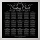 Make your wedding reception beautiful with this 15 table seating chart for 150 guests. Designed as a part of our Silver Foil Elegant Wedding Suite, it features a simple yet elegant design with pale silver gray text on a black background with a faux foil silver floral filigree border. This chart shows table assignments so your guests will have an easy time finding the right table.