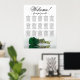 This exquisite wedding seating chart consists of 15 tables and showcases a romantic design featuring a single long-stemmed deep emerald green coloured rose lying on its side and reflecting in a pool of water. The title, "Welcome! please find your table," is written in elegant script, while the names of the couple and the wedding date are displayed at the bottom. With space for 150 guests and 10 seats per table, this chart provides ample seating arrangements for your wedding reception. It is a fantastic way to add elegance, class, and style to your special day, while also helping your guests find their seats with ease.