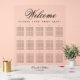 A simple but elegant transparent wedding seating chart with 15 tables on 3 rows. The title "Welcome" above and the names of the bride and groom below are written in an elegant calligraphy, the rest in caps. All text is black.