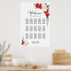 Help your guests find their table with this red and white rose floral wedding seating chart. It is suitable for a wedding with 15 tables and 150 guests.