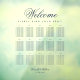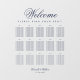 All text is navy blue. The word Welcome is written in an elegant calligraphic script, the rest in caps. The tables are on 3 rows. Above them and under the word Welcome, there is the message "Please find your seat!".