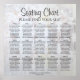 Make your wedding reception beautiful with this seating chart. Designed as a part of our White Reflections Wedding Suite, it features black text over a background of reflecting white flowers and hearts. This chart shows table assignments so your guests will have an easy time finding the right table.