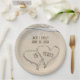 Pair of hearts in beach sand with white frothy ocean surf for 15th anniversary party.