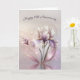 Mauve and white iris flowers with intricate details are outlined in gold and adorned with dew drops for 15th wedding anniversary.