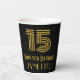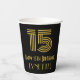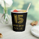This vintage look and Roaring Twenties inspired birthday themed paper cup design features a large art deco inspired style number “15”, in addition to the birthday greeting message “Happy 15th Birthday,” and an editable name. It also has a black-coloured background. Roaring Twenties inspired paper cups like this might be used when hosting a party for somebody in celebration of their fifteenth birthday. [~Z0000546]