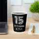 This 1920s/1930s style inspired and vintage style birthday paper cup design features a large art deco inspired appearance number “15”, plus the birthday greeting message “Happy 15th Birthday,” and a custom name. The background is coloured black. Vintage style paper cups like this might be fun to use at a party being held for somebody who is celebrating their fifteenth birthday. [~Z0000542]