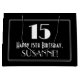 This vintage appearance Roaring '20s style inspired birthday-themed gift bag design features a large art deco look inspired number "15", the message "Happy 15th Birthday,", a custom name, and a border pattern consisting of thin lines. The background is coloured black. A gift bag like this might be used when wrapping presents being given to somebody in celebration of their fifteenth birthday. [~Z0000496]