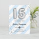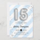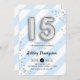 15th Birthday - Blue Stripes Silver Balloons Invitation