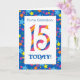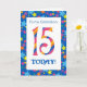 A bright and colourful 15th Birthday Card for a Grandson, with striped numbers and a starry border, from a digital design by Judy Adamson. You can change the inside message if you wish.