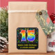 This fun, colourful, and vibrant birthday sticker design features a large number "15" with a rainbow spectrum gradient inspired pattern, along with the message "Happy 15th Birthday,", and a customisable name. Part of the background has a pattern of various music notes and symbols having a variety of colours and sizes. Fun, personalised birthday stickers like this might be used as a birthday party decoration, or perhaps given as a birthday present, or perhaps be used when wrapping birthday gifts being given to celebrate a singer’s, a song composer’s, a musician’s, or somebody else’s fifteenth birthday. [~Z0000423]