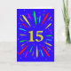 An explosive 15th birthday card! What a wonderful way to send birthday greetings. The number 15 in bright yellow with an explosion of bright colours and stars.