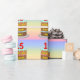 this fun and colourful birthday themed wrapping paper design features a cartoon-style depiction of a three-tier birthday cake having numeral-shaped candles on top showing the number “15“, along with the message “HAPPY 15TH BIRTHDAY,”, and a customisable recipient name. The background features a multicolored pastel rainbow spectrum inspired gradient pattern. Cheerful birthday themed wrapping paper like this might be used when giving a gift or present in celebration of somebody’s fifteenth birthday. [~Z0000622]