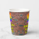 This fun and exciting urban street art and graffiti themed birthday paper cup design features a large number “15” with a colourful rainbow spectrum gradient inspired pattern, along with the message “Happy 15th Birthday,”, and a customisable name. The background has a brick wall pattern. Vibrant, colourful paper cups like this might be fun to use at a birthday party being held in celebration of somebody’s 15th birthday. [~Z0000543]
