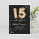 15th birthday party invitation. Elegant design in faux glitter gold and black. Invite card features gold number 15 balloons and script font. Perfect for a stylish bday celebration. Message me if you need custom age.