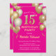 15th Birthday Hot Pink and Gold Glitter Balloons Invitation