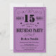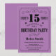 15th Birthday Invitation Black and Purple Typography. Black and Purple Background. Kids Birthday. Male Men or Women Birthday. Kids Boy or Girl Lady Teen Teenage Bday Invite. 13th 15th 16th 18th 20th 21st 30th 40th 50th 60th 70th 80th 90th 100th. Any Age. For further customisation, please click the "Customise it" button and use our design tool to modify this template.