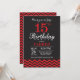 15th Birthday Invitation with Black and Red Chevron. Chalkboard. Kids Birthday. Boy or Girl Bday Invite. For further customisation, please click the "Customise it" button and use our design tool to modify this template.