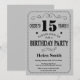 15th Birthday Invitation Black and Silver Grey Typography. Black and Silver Grey Grey Background. Kids Birthday. Male Men or Women Birthday. Kids Boy or Girl Lady Teen Teenage Bday Invite. 13th 15th 16th 18th 20th 21st 30th 40th 50th 60th 70th 80th 90th 100th. Any Age. For further customisation, please click the "Customise it" button and use our design tool to modify this template.