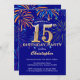 15th Birthday Navy Blue and Gold Rainbow Fireworks Invitation
