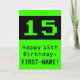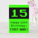 The front of this geeky and nerdy birthday greeting card design features a large green vintage computer gaming style number "15". It also features the birthday greeting message "Happy 15th Birthday,", and a name that can be edited. The inside features a custom birthday greeting message, or could perhaps be cleared and left blank if a message is to be written by hand instead. A silly custom birthday card like this might be a fun way to send birthday wishes to somebody who is celebrating their fifteenth birthday. [~Z0000430]