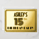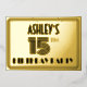 The front of this 1920s/1930s style inspired fifteenth birthday party/celebration foil invitation card design features an editable name, an intricate art deco look inspired number “15th”, the message “BIRTHDAY PARTY”, and a multi-line border. The back features personalised details about the event, such as the date, time, location, and any other information that may be relevant. Elegant, luxurious, personalised invitations like these might be used to invite attendees to a birthday gathering/party being held to celebrate somebody’s 15th birthday. [~Z0000594]