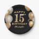 15th Birthday Party Black and Gold Balloons Paper Plate