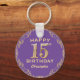 15th Birthday Party Purple and Gold Glitter Frame Key Ring