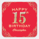 15th Birthday Party Red and Gold Glitter Frame Square Sticker