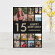15th Birthday Photo Collage 13 Photos Black & Gold Card