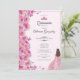 This elegant pink quinceanera invitation has a pink tiara crown, pink roses, glittery dress, and pink butterflies with a personalizable template to create your own message. The invitation template is customizable in the listing editor and is also available as a digital download that's printable after you personalize it.