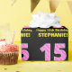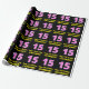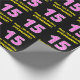 This joyful and fun birthday themed wrapping paper design features a large number "15" having a striped pattern containing heart shapes coloured light pink and dark pink. It also features the birthday greeting message "Happy 15th Birthday,", and a customisable recipient name. Wrapping paper like this might be used when wrapping gifts being given to somebody in celebration of their 15th birthday. [~Z0000435]