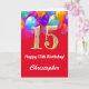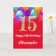 15th Birthday Red and Gold Colourful Balloons Birthday Card. For further customisation, please click the "Customise it" button and use our design tool to modify this template.