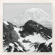 A black and white photograph of Mount Rainier with a rugged mountain range in the foreground. Image Copyright ©2023 Kimberly J Tilley. zazzle.com/store/developingnature