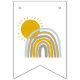 This baby shower bunting flag features a quirky pastel blue and mustard rainbow with complimenting sun and an elegant script font. This is the perfect baby shower invite for your bohemian, summer, or garden baby shower.