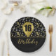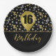 16 Gold Birthday Ballon on Black Gold Confetti Paper Plate