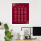 This beautiful wedding seating chart features an exquisite design in gold and burgundy maroon or wine red, adorned with a delicate calligraphy title and lacy golden faux foil filigree in the corners. The customary format can accommodate up to 160 guests seated at 16 tables, each with 10 seats. The names of the couple and wedding date are located below. This seating chart exudes elegance and refinement, adding a touch of sophistication and fashion to your wedding reception while ensuring your guests easily locate their designated tables.