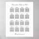 16 Table Elegant Minimalist Seating Chart, please personalise the names of the couple and the names of the guests along with any of the other text that you may wish to personalise. An elegant seating chart featuring stylish black text in a clean minimalistic layout on a white background.