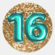 16 Teal Foil Balloons Sparkly Chunky Gold Glitter Classic Round Sticker
