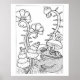 My black and white line drawing with a toad and fantasy flowers on a poster that kids can colour.