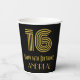 This vintage look and 1920s/1930s style inspired birthday themed paper cup design features a large art deco inspired look number “16”, in addition to the birthday greeting message “Happy 16th Birthday,” and a custom name. It also has a black-colored background. 1920s/1930s style inspired birthday themed paper cups like this might be used at a birthday party celebrating somebody’s 16th birthday. [~Z0000546]