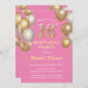 16th Birthday Birthday Pink and Gold Balloons Invitation