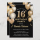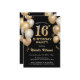 16th Birthday Black and Gold Glitter Balloons Invitation
