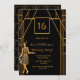 16th birthday black gold 1920's art deco style invitation