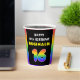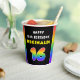 This upbeat and joyful birthday themed paper cup design features the number “16“ having a colourful rainbow spectrum inspired gradient pattern, along with the message “HAPPY 16th BIRTHDAY,”, and an editable recipient name. Bold birthday themed paper cups like this might be used at a party in celebration of somebody’s 16th birthday. [~Z0000639]