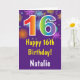 16th Birthday Colourful Rainbow Fireworks Purple Card with personalised name. For further customisation, please click the "Customise it" button and use our design tool to modify this template.