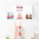 For a Sweet 16, 16th birthday as a party welcome banner or wall decoration. A collage of 3 of your photos of herself friends, family, interest or pets. Personalise and add her name, age 16 and a date. Date of birth or the date of the birthday party. Pink and black coloured text.