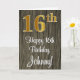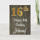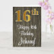 16th Birthday: Elegant Faux Gold Look #, Faux Wood Card
