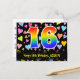 16th Birthday: Fun Hearts Pattern, Rainbow 16 Postcard