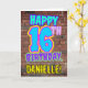The front of this fun birthday-themed greeting card design features the message “HAPPY 16TH BIRTHDAY,” having a colourful, vibrant, urban street art and graffiti inspired appearance, along with an editable recipient name. The background of the front features a brick wall inspired pattern. The inside has an editable birthday greeting message, or could perhaps be cleared and left blank if a message is to be written by hand instead. A fun, personalised birthday greeting card like this might be a fun way to send a birthday greeting message to somebody who is celebrating their sixteenth birthday. [~Z0000531]